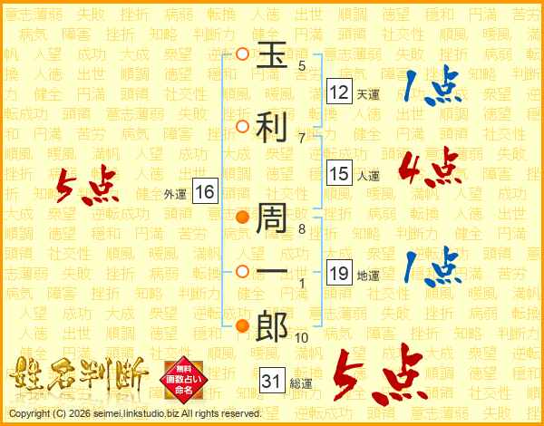 玉利周一郎さんの総運は31画の5点!
