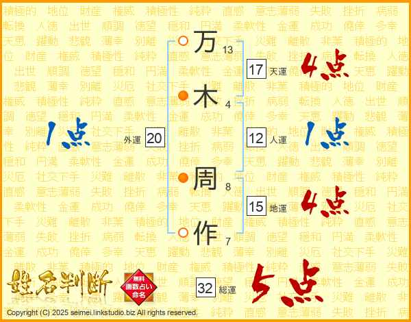 万木周作さんの総運は32画の5点!