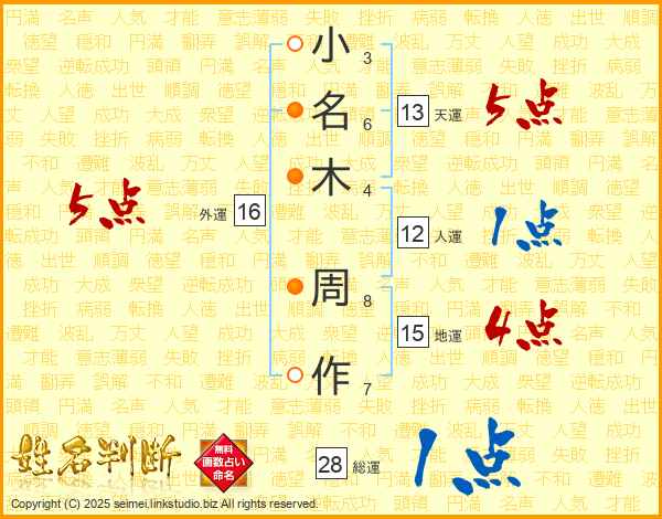小名木周作さんの天運は13画の5点!