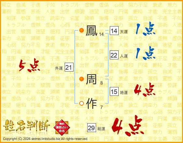 鳳周作さんの総運は29画の4点!
