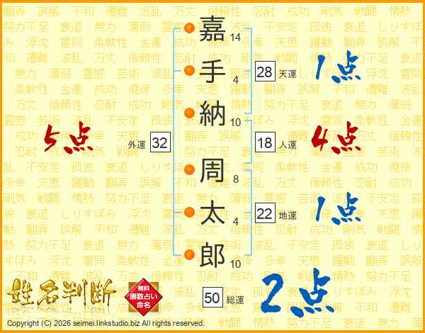 嘉手納周太郎さんの外運は32画の5点!