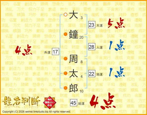大鐘周太郎さんの総運は45画の4点!