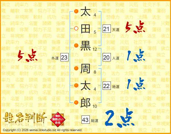 太田黒周太郎さんの天運は21画の5点!