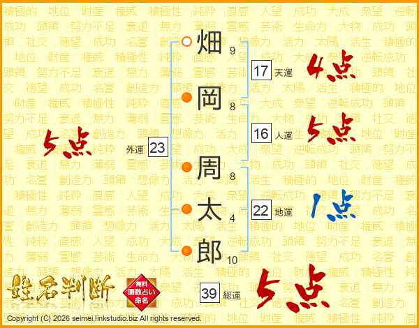 畑岡周太郎さんの総運は39画の5点!