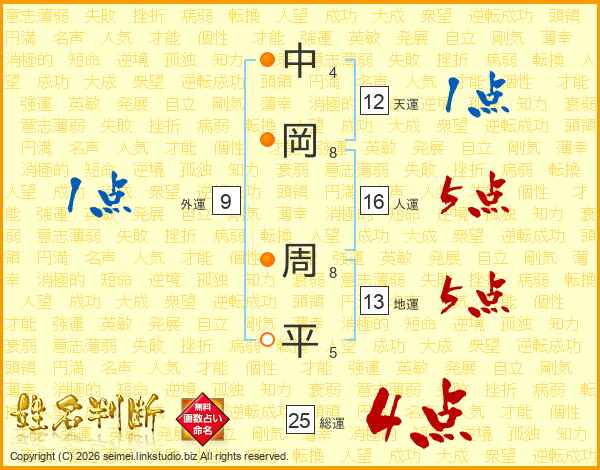 中岡周平さんの天運は12画の1点!