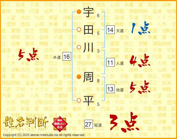 宇田川周平さんの天運は14画の1点!