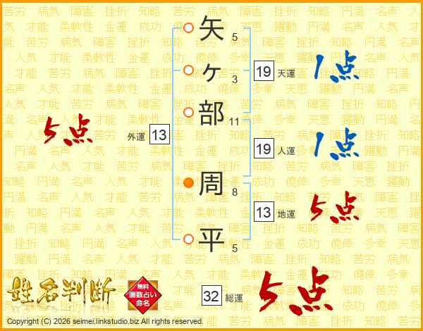 矢(5画)ヶ(3画)部(11画) 周(8画)平(5画)