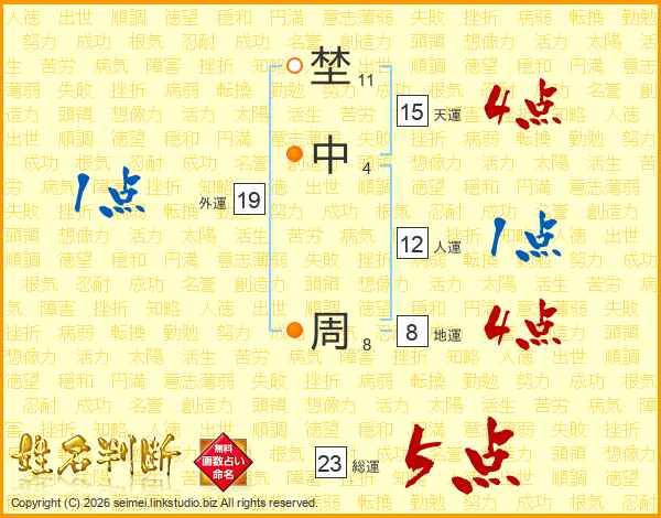 埜中周さんの総運は23画の5点!
