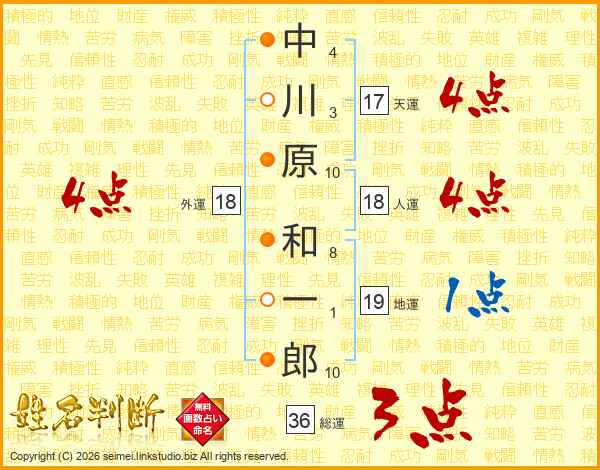 中(4画)川(3画)原(10画) 和(8画)一(1画)郎(10画)