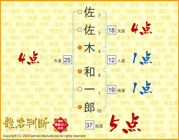 佐佐木和一郎さんの総運は37画の5点!
