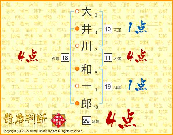 大(3画)井(4画)川(3画) 和(8画)一(1画)郎(10画)