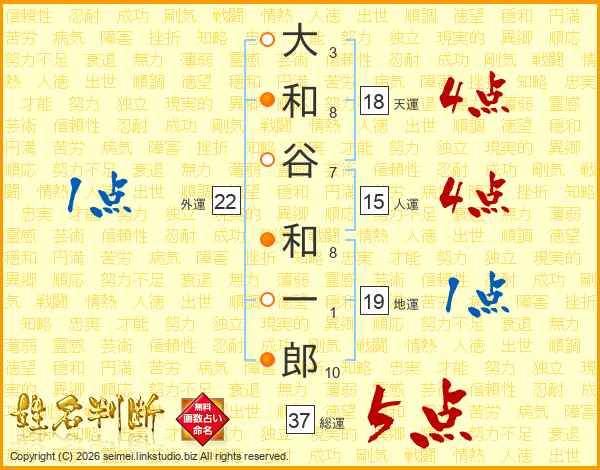 大和谷和一郎さんの総運は37画の5点!
