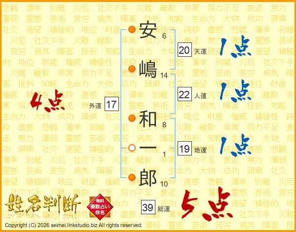 安嶋和一郎さんの総運は39画の5点!