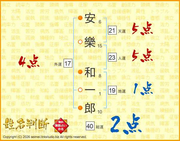 安樂和一郎さんの天運は21画の5点!