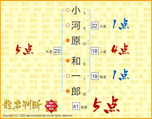 小(3画)河(9画)原(10画) 和(8画)一(1画)郎(10画)