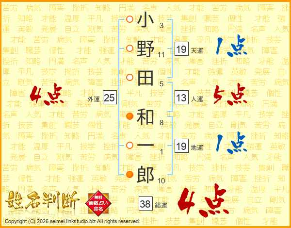 小野田和一郎さんの総運は38画の4点!