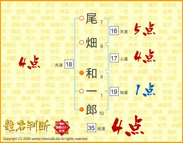 尾畑和一郎さんの総運は35画の4点!