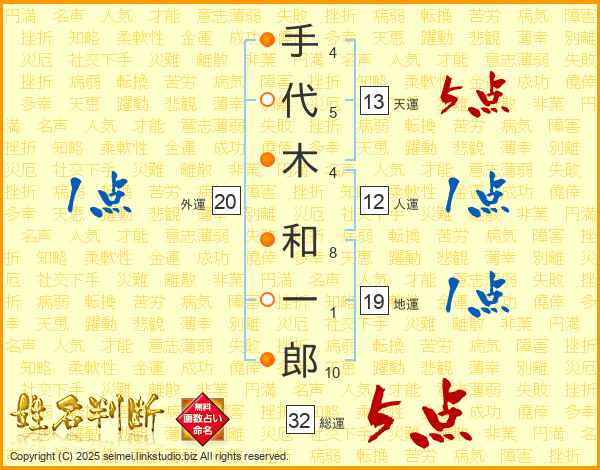 手代木和一郎さんの総運は32画の5点!