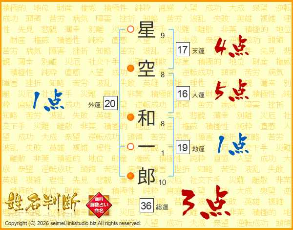 星空和一郎さんの天運は17画の4点!