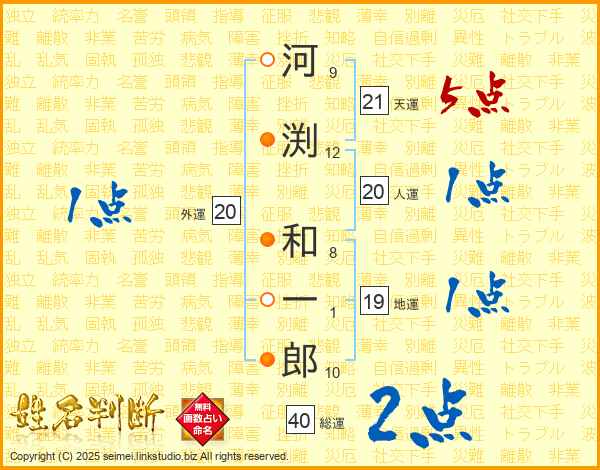 河渕和一郎さんの総運は40画の2点!