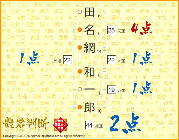 田名網和一郎さんの総運は44画の2点!