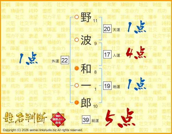 野波和一郎さんの総運は39画の5点!