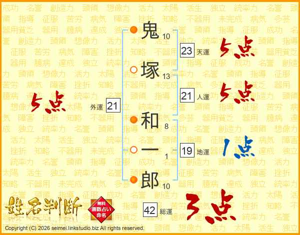 鬼塚和一郎さんの外運は21画の5点!