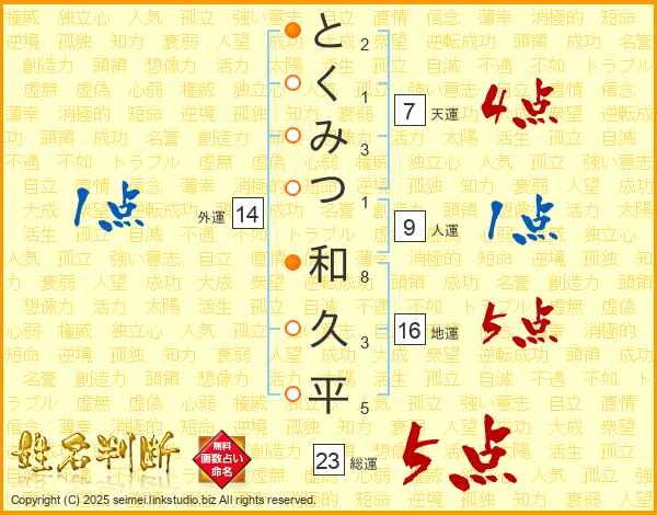 と(2画)く(1画)み(3画)つ(1画) 和(8画)久(3画)平(5画)