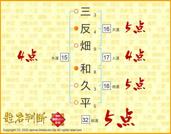 三(3画)反(4画)畑(9画) 和(8画)久(3画)平(5画)