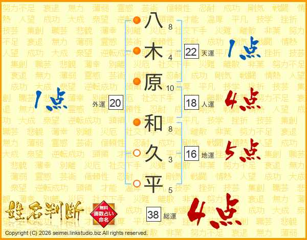 八(8画)木(4画)原(10画) 和(8画)久(3画)平(5画)