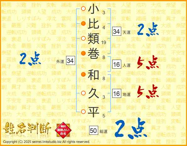 小(3画)比(4画)類(19画)巻(8画) 和(8画)久(3画)平(5画)