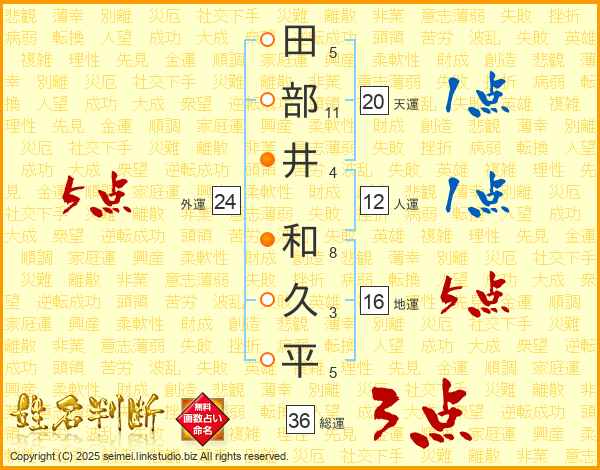 田部井和久平さんの総運は36画の3点!