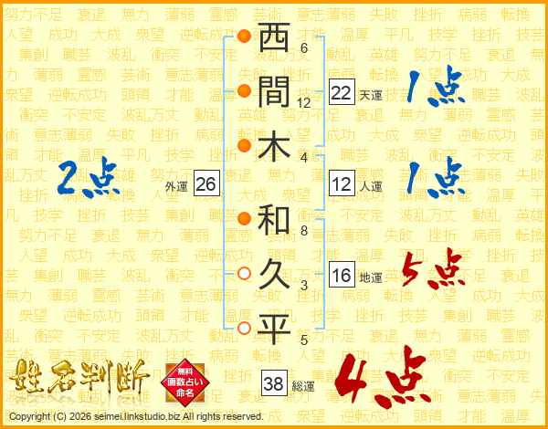 西間木和久平さんの天運は22画の1点!