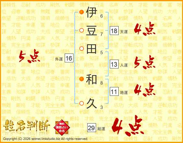 伊豆田和久さんの天運は18画の4点!