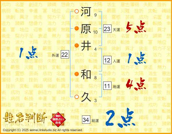 河(9画)原(10画)井(4画) 和(8画)久(3画)