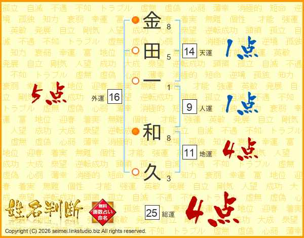 金田一和久さんの総運は25画の4点!