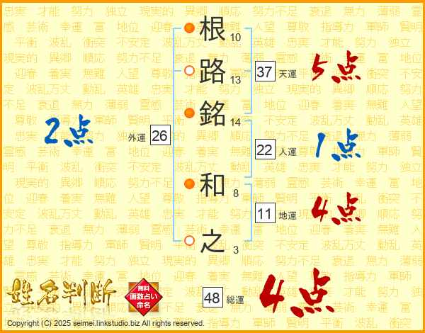 根(10画)路(13画)銘(14画) 和(8画)之(3画)