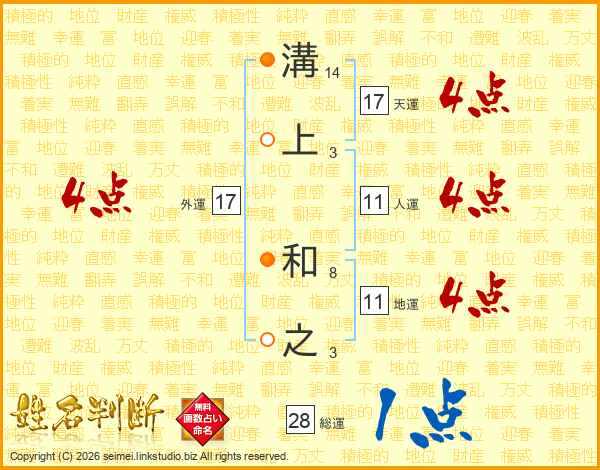 溝上和之さんの地運は11画の4点!