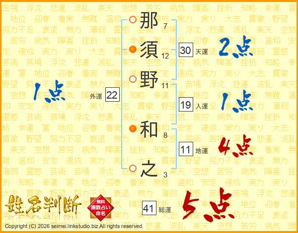 那(7画)須(12画)野(11画) 和(8画)之(3画)