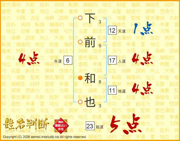 下前和也さんの総運は23画の5点!