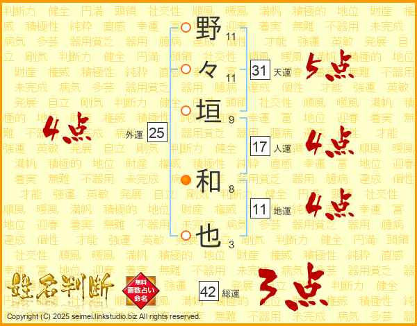 野々垣和也さんの地運は11画の4点!