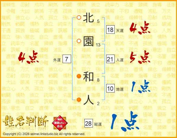 北(5画)園(13画) 和(8画)人(2画)