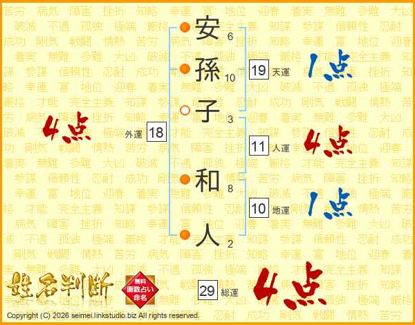 安孫子和人さんの総運は29画の4点!