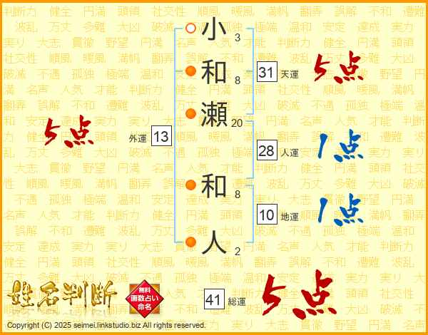 小(3画)和(8画)瀬(20画) 和(8画)人(2画)