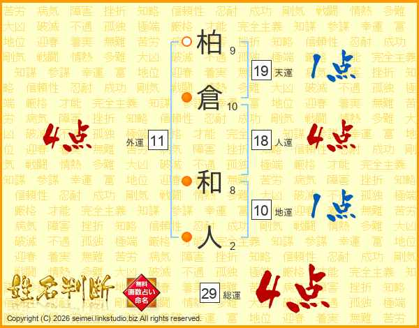 柏(9画)倉(10画) 和(8画)人(2画)