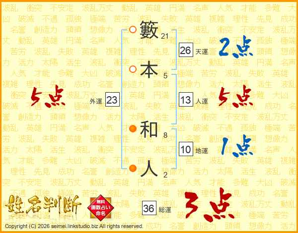 籔本和人さんの天運は26画の2点!