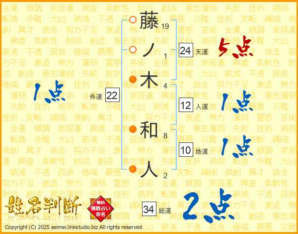 藤(19画)ノ(1画)木(4画) 和(8画)人(2画)