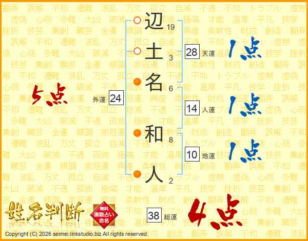 辺土名和人さんの総運は38画の4点!