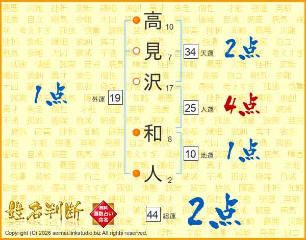 高見沢和人さんの総運は44画の2点!