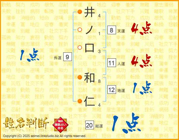 井(4画)ノ(1画)口(3画) 和(8画)仁(4画)